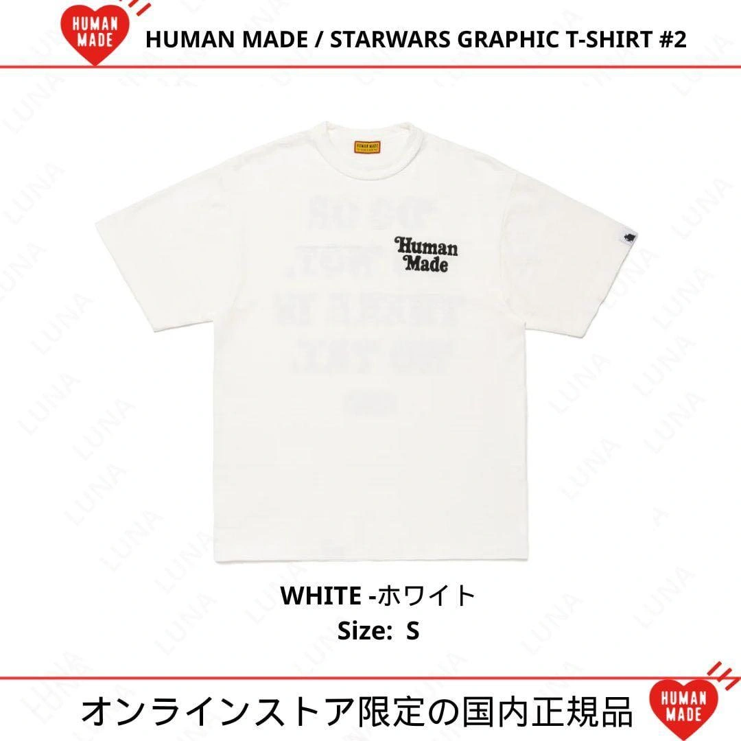 HUMAN MADE × STAR WARSのグラフィックTシャツ #2です。 ・カラー:ホワイト ・サイズ:S ・新品・未使用 ・国内正規品 ・公式オンラインストア限定 シンプルなホワイトカラーで、コーディネートしやすい1枚です。 ※ 返品・交換はご遠慮ください。 ※他にも正規品の限定アイテムを多数出品しております。複数点ご購入の場合は、お値引きのご相談も可能です。 ご不明点はお気軽にお問い合わせください。