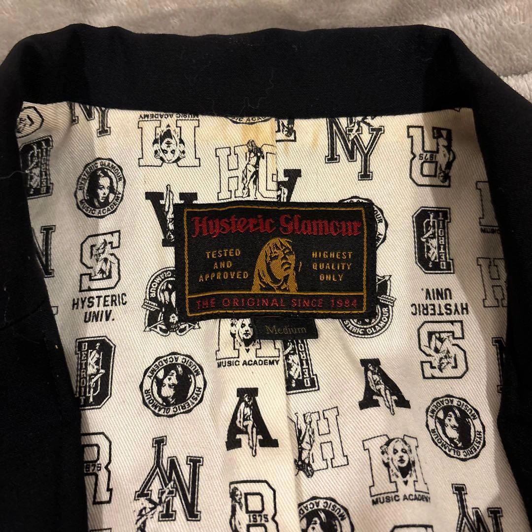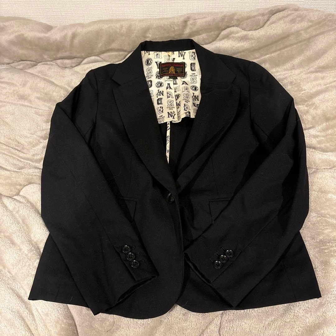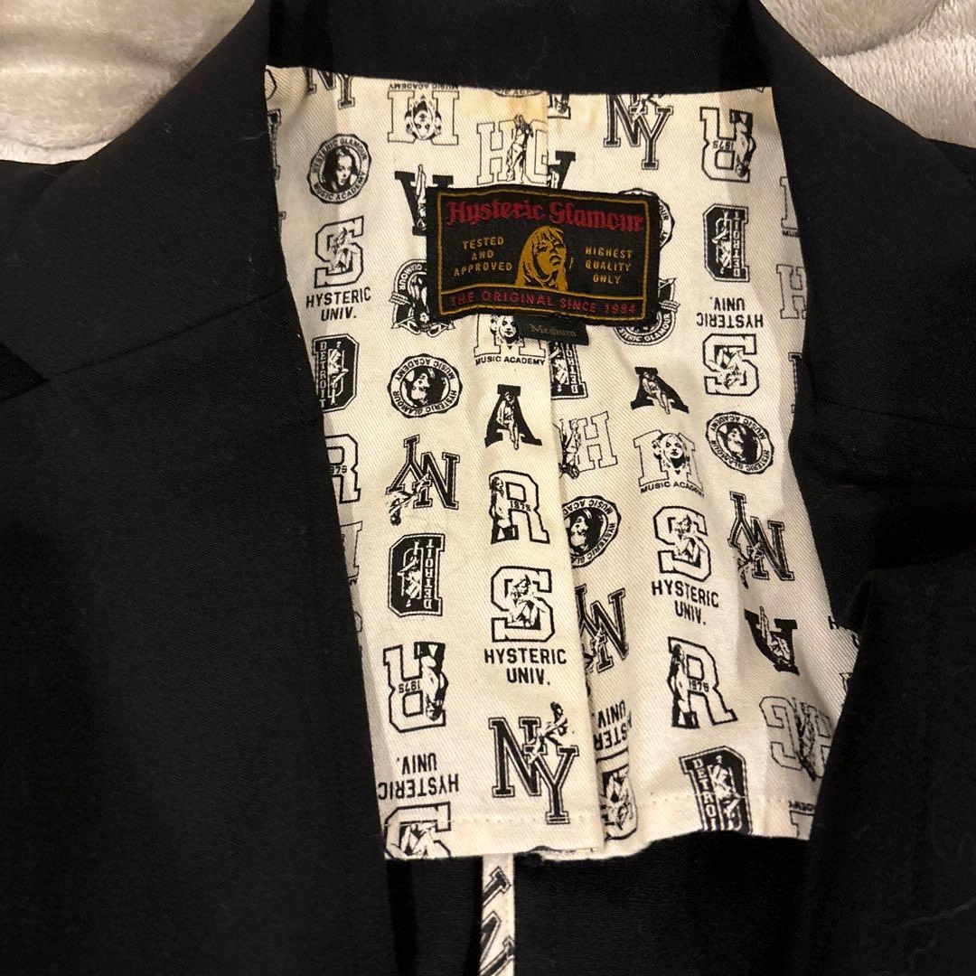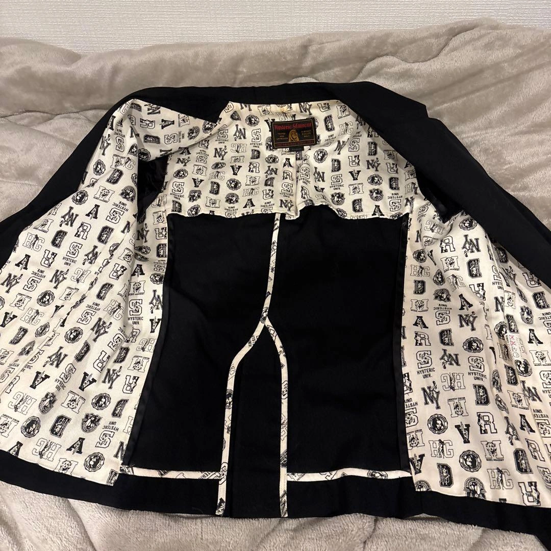 ブラックのテーラードジャケット、Hysteric Glamourのデザインです。 5年〜7年位前に購入し、5回程度着用しました。 使用感等は、お写真でご確認をお願いいたします。 ご希望の方はお気軽にご連絡ください。