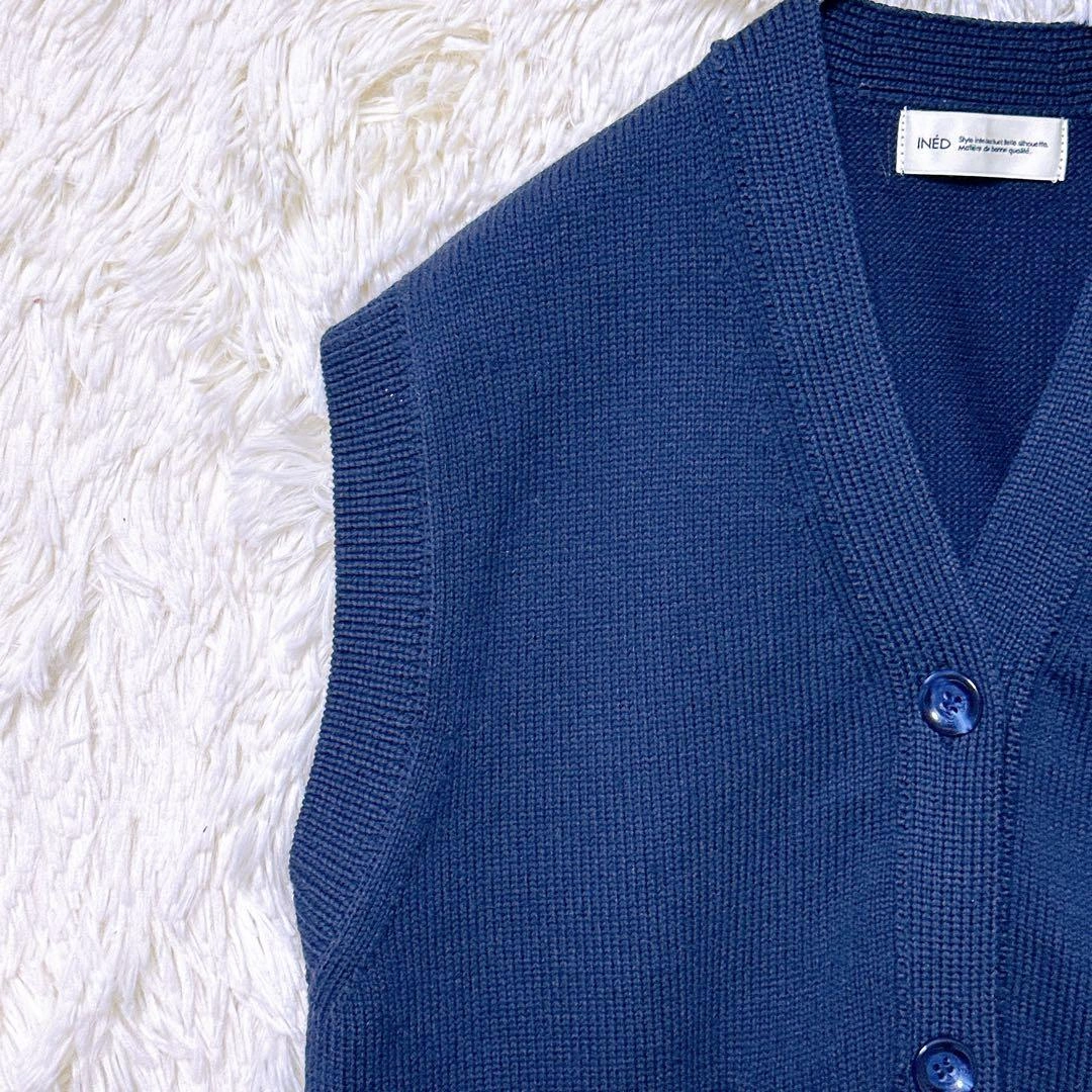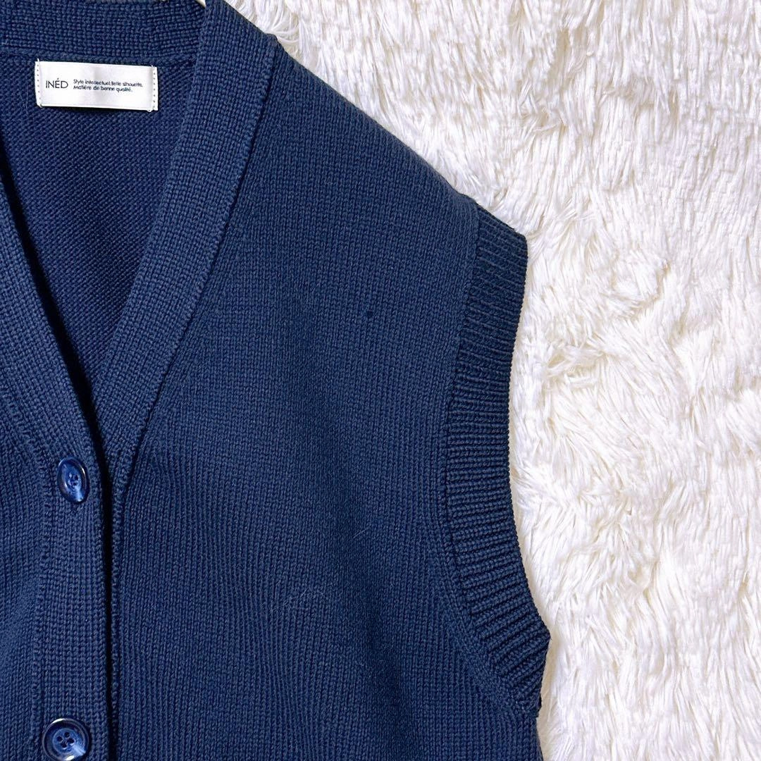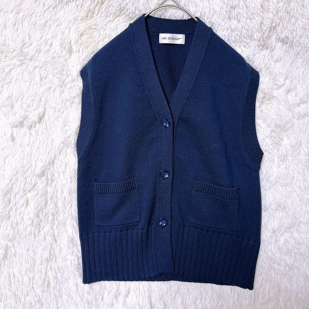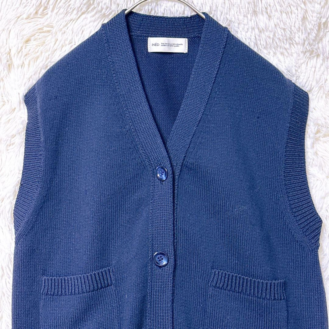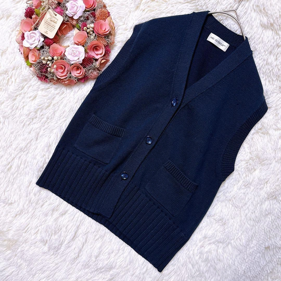 あたたかさINEDのVネックデザイン、ネイビーのニットベストです。前面に2つのポケットがあります。カジュアルなスタイルに合うと思います。 サイズ:9(Mサイズ相当) 着丈:51cm 身幅:45cm 肩幅:40cm ※素人採寸のため、多少の誤差はご了承ください。 写真にて状態をご確認ください。 ご不明点はお気軽にお問い合わせください。