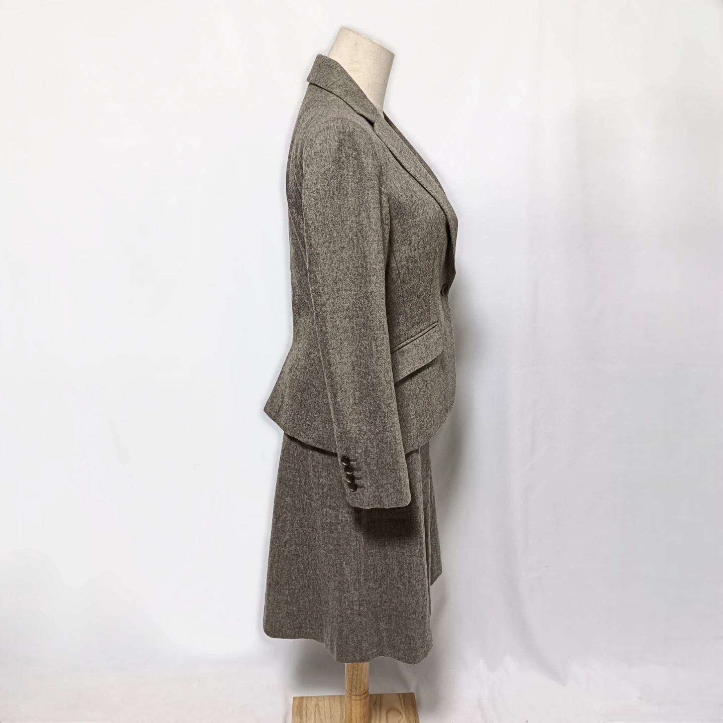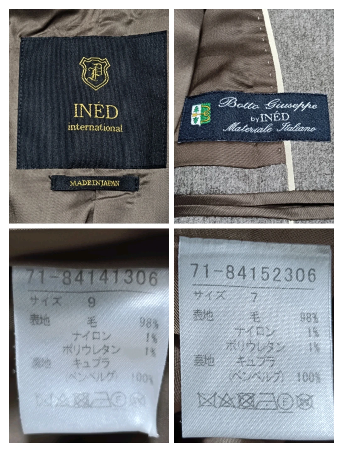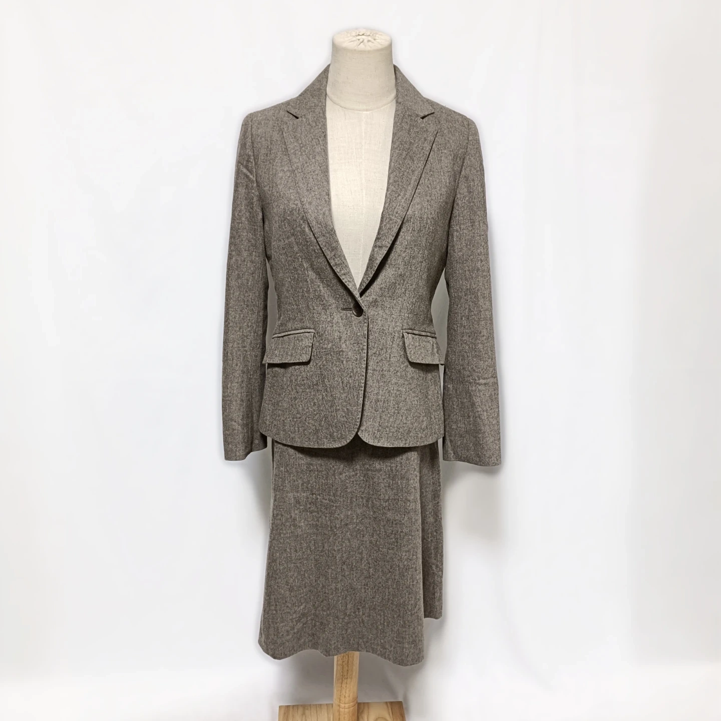 ご覧いただきありがとうございます! INED(イネド)の上質なウール混素材を使用した、セットアップスーツです。 ビジネスシーンはもちろん、お子様の卒業式や入学式などのセレモニーにも最適な、上品で洗練されたデザイン。 イタリアの高級生地メーカーである**Botto Giuseppe (ボット・ジュゼッペ)**の生地を使用しており、しなやかで高級感のある肌触りが特徴です。 裏地は滑りの良いキュプラ(ベンベルグ)100%で、着心地も抜群です。 □商品名□ 【INED】イネド 高級ウール混 セットアップスーツ ジャケット&スカート □ブランド□ INED イネド □表記サイズ□ ジャケット:9 スカート:7 □実寸サイズ(cm) □ 【床置きサイズ】 ジャケット 着丈:57 肩幅:38 身幅︰43 袖丈:58 スカート ウエスト︰35 着丈︰59 ※実寸につきまして多少の誤差はご了承ください。 ※表記サイズだけではなく実寸のサイズをご確認ください。 □カラー□ グレーとブラウンの中間色(ニュアンスカラー) □素材□ 表地:ウール 98% ナイロン 1% ポリウレタン 1% 裏地:キュプラ(ベンベルグ) 100% □コンディション□ 目立った汚れやダメージなど特にございません。 ※汚れはできる限り写真にて掲載しております。まずは画像をご確認ください。 どうぞよろしくお願い致します。 □商品管理番号□ FF5-W-5633
