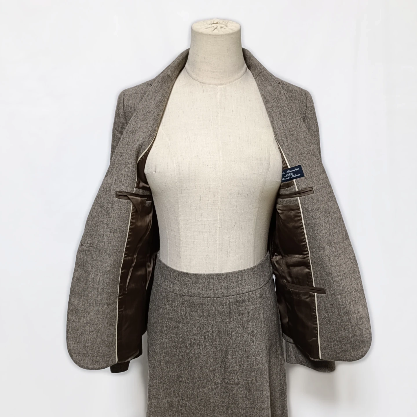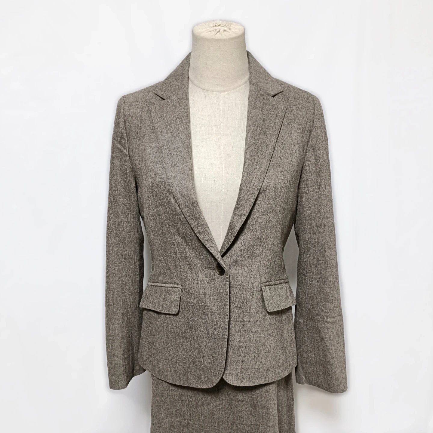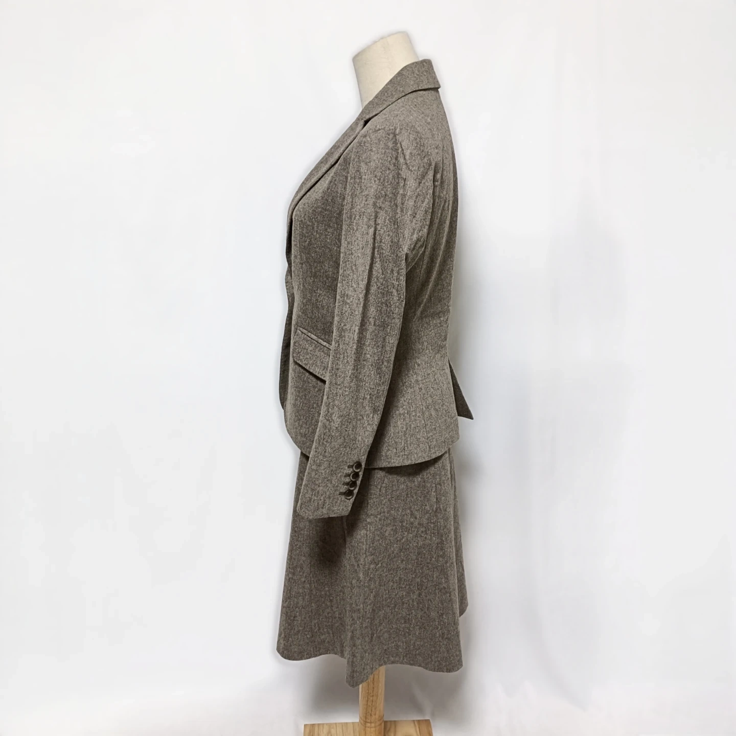 ご覧いただきありがとうございます! INED(イネド)の上質なウール混素材を使用した、セットアップスーツです。 ビジネスシーンはもちろん、お子様の卒業式や入学式などのセレモニーにも最適な、上品で洗練されたデザイン。 イタリアの高級生地メーカーである**Botto Giuseppe (ボット・ジュゼッペ)**の生地を使用しており、しなやかで高級感のある肌触りが特徴です。 裏地は滑りの良いキュプラ(ベンベルグ)100%で、着心地も抜群です。 □商品名□ 【INED】イネド 高級ウール混 セットアップスーツ ジャケット&スカート □ブランド□ INED イネド □表記サイズ□ ジャケット:9 スカート:7 □実寸サイズ(cm) □ 【床置きサイズ】 ジャケット 着丈:57 肩幅:38 身幅︰43 袖丈:58 スカート ウエスト︰35 着丈︰59 ※実寸につきまして多少の誤差はご了承ください。 ※表記サイズだけではなく実寸のサイズをご確認ください。 □カラー□ グレーとブラウンの中間色(ニュアンスカラー) □素材□ 表地:ウール 98% ナイロン 1% ポリウレタン 1% 裏地:キュプラ(ベンベルグ) 100% □コンディション□ 目立った汚れやダメージなど特にございません。 ※汚れはできる限り写真にて掲載しております。まずは画像をご確認ください。 どうぞよろしくお願い致します。 □商品管理番号□ FF5-W-5633