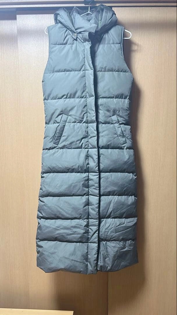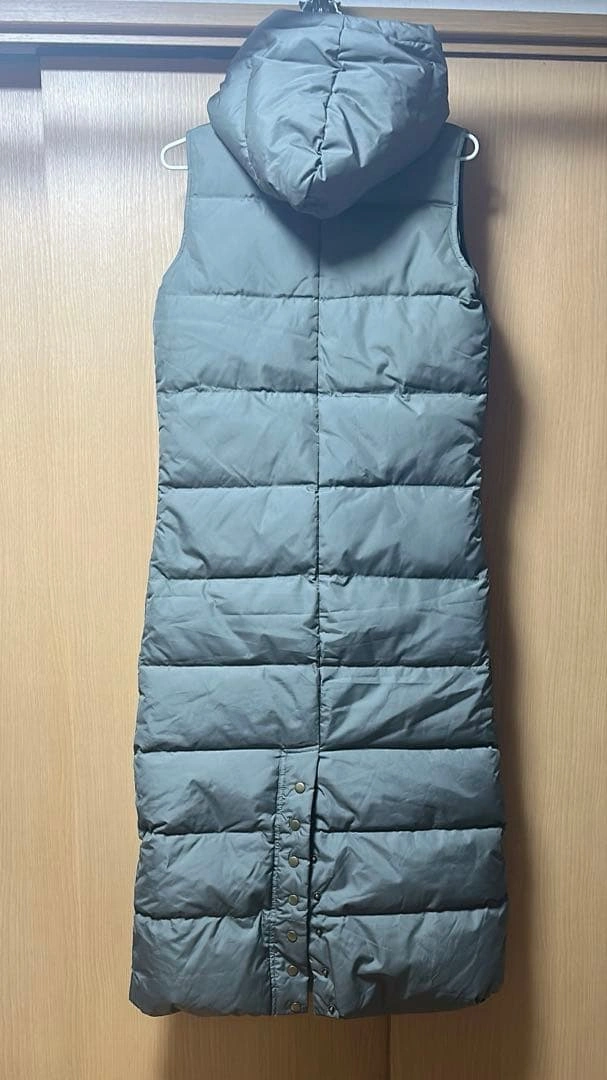 フード付きのカーキ色のAラインロングダウンベスト - ブランド: LOVE GIRLS MARKET - カラー: カーキ - スタイル: ロングダウンベスト - 内側のデザイン: 光沢のあるライニング - フード: フード付き・取り外し可能 - ポケット: 両サイドにポケット 数年前に子供が欲しがりセレクトショップで購入しましたが、かなりロング丈で1・2回着用後はクローゼット保管しておりました。 フードはスナップボタンで取り外し可能。 後ろ裾にもスナップボタンがあり、足さばきが良く開閉できます。 身丈約128 身幅約45 素人採寸ですので、多少の誤差はご了承ください。 ご希望の方はお気軽にご連絡ください。