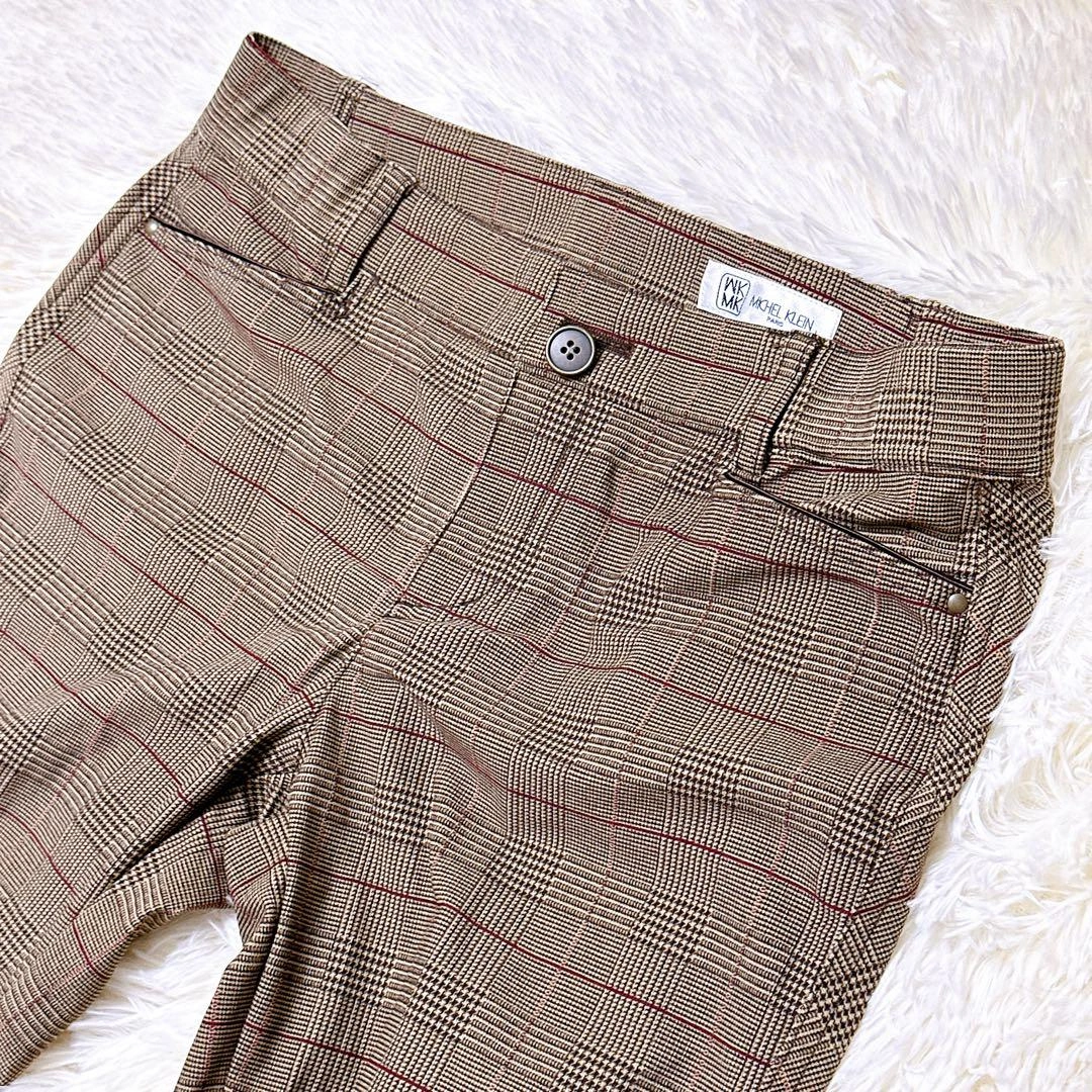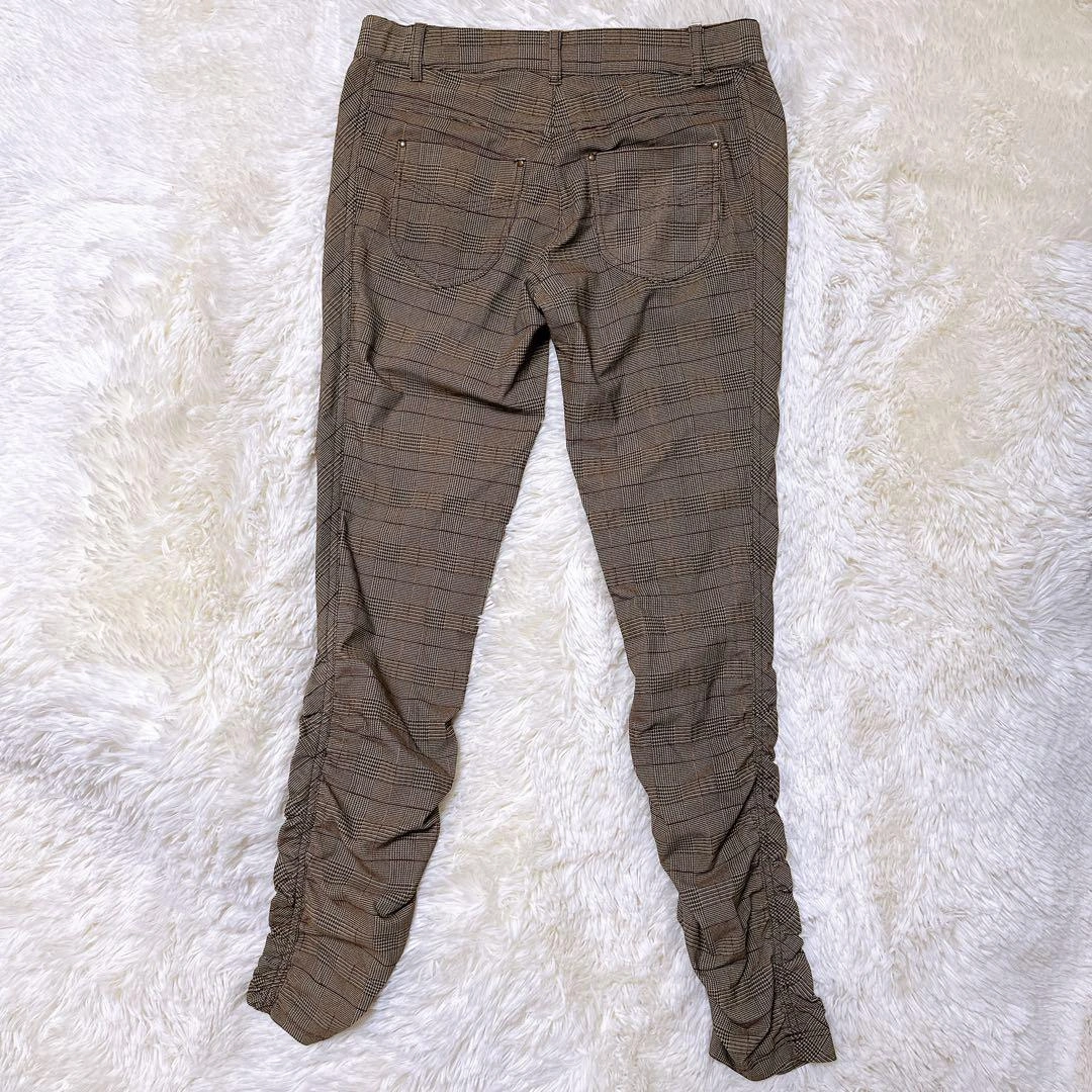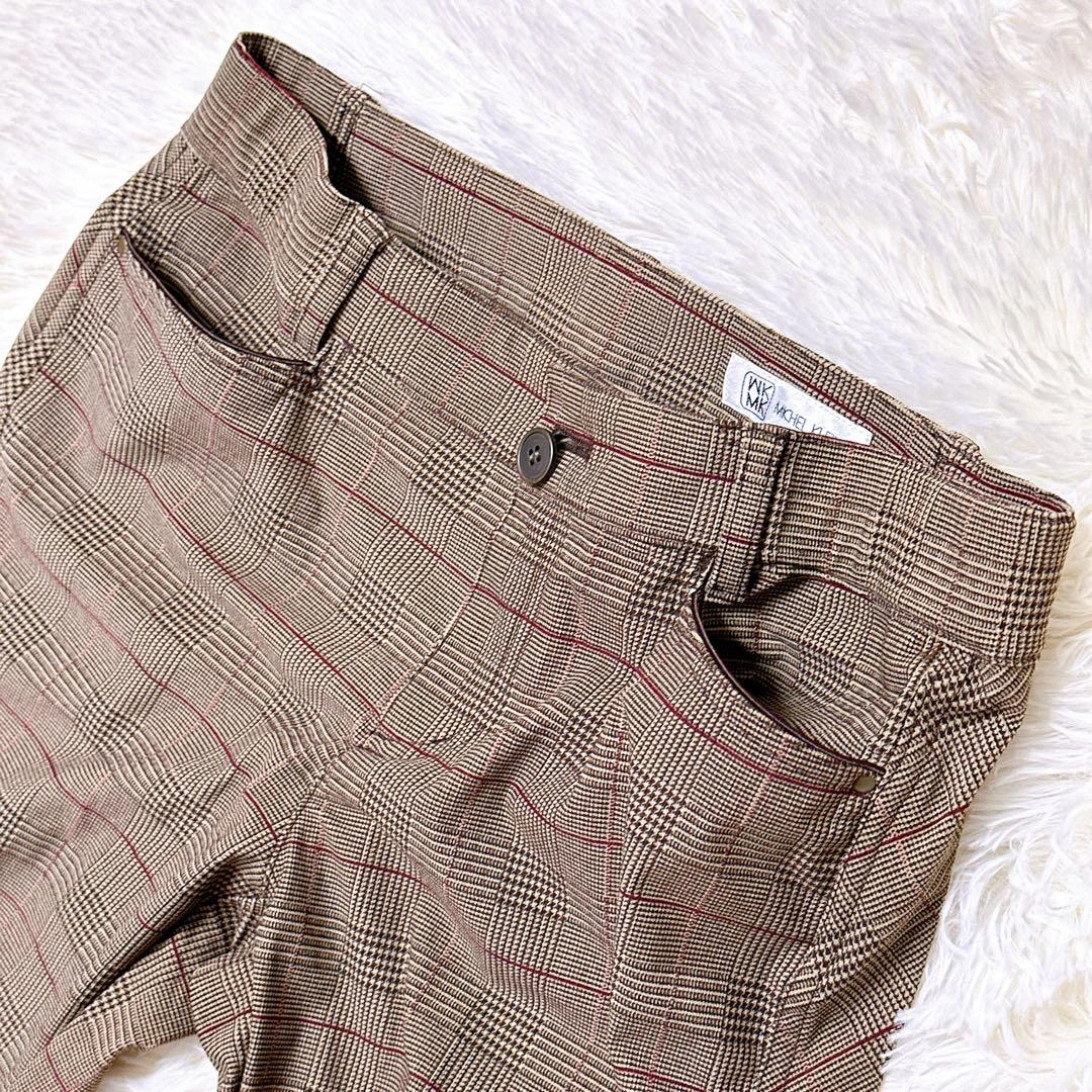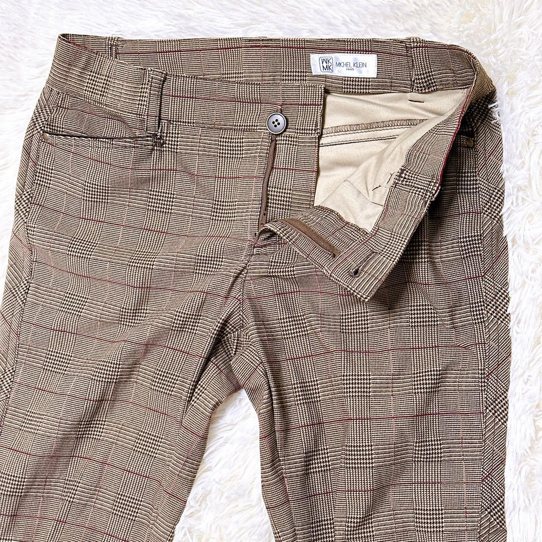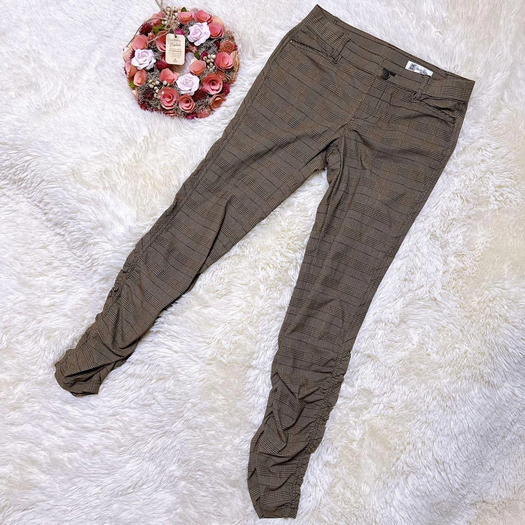 あたたかさMICHEL KLEINのブラウン系チェック柄スリムフィットカジュアルパンツです。裾にギャザーが入っ たおしゃれなデザイン。 ボタンが少し取れかかっていますが、汚れはなく比較的きれいな状態です。詳細は写真にてご確認ください。 ウェスト:38cm 股上:21cm ヒップ:42cm 股下:75cm ご不明点はお気軽にお問い合わせください。