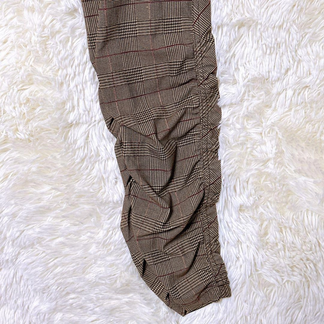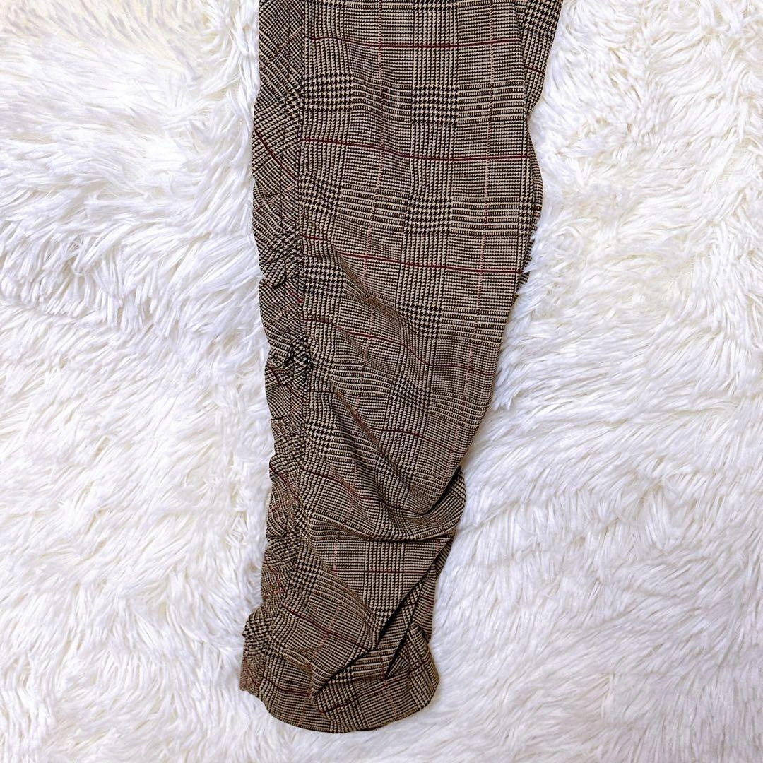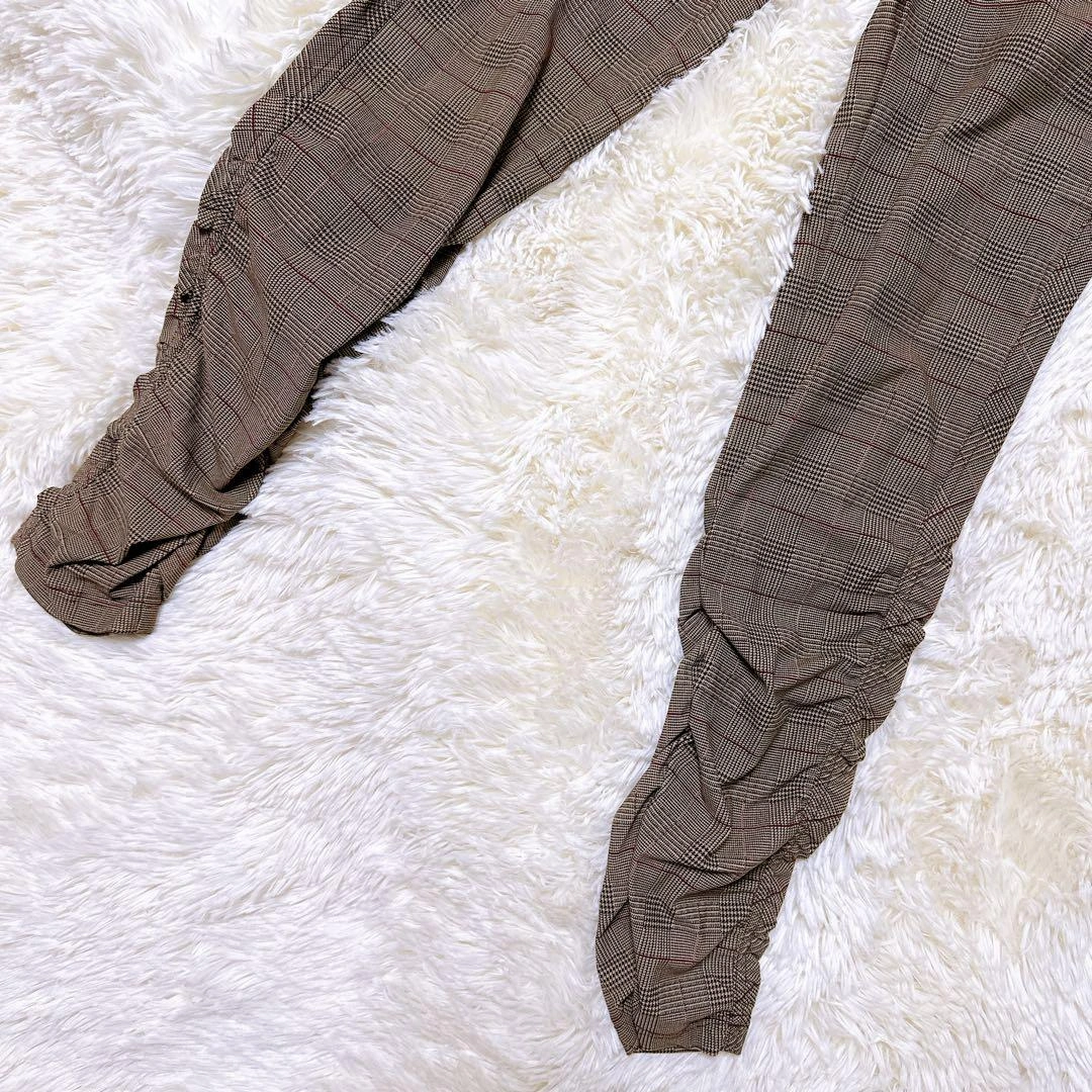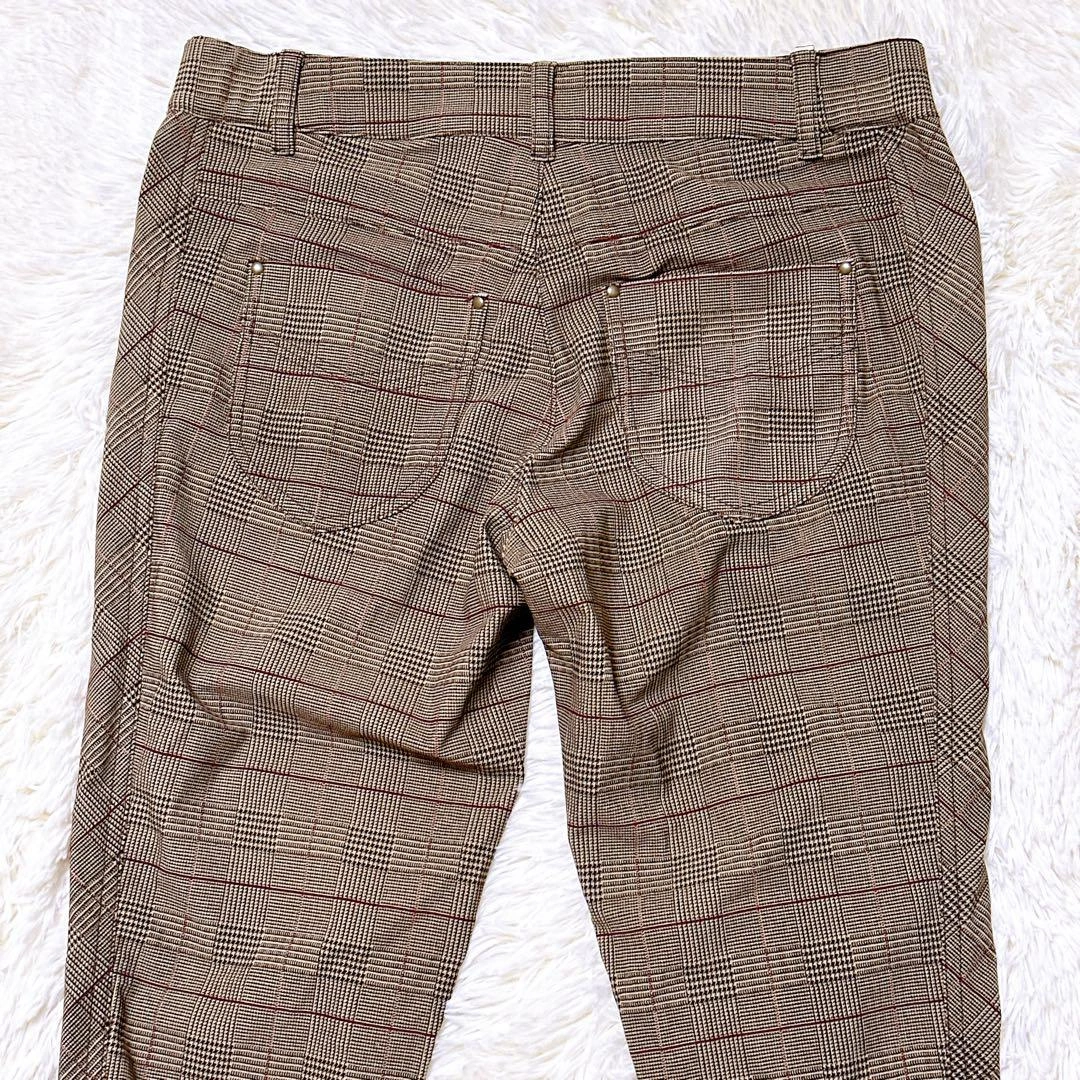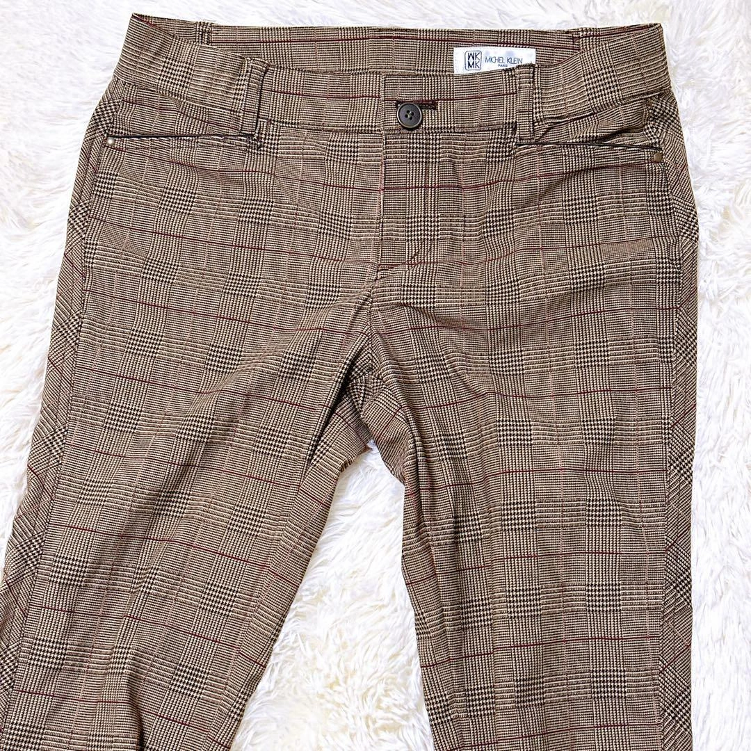 あたたかさMICHEL KLEINのブラウン系チェック柄スリムフィットカジュアルパンツです。裾にギャザーが入っ たおしゃれなデザイン。 ボタンが少し取れかかっていますが、汚れはなく比較的きれいな状態です。詳細は写真にてご確認ください。 ウェスト:38cm 股上:21cm ヒップ:42cm 股下:75cm ご不明点はお気軽にお問い合わせください。