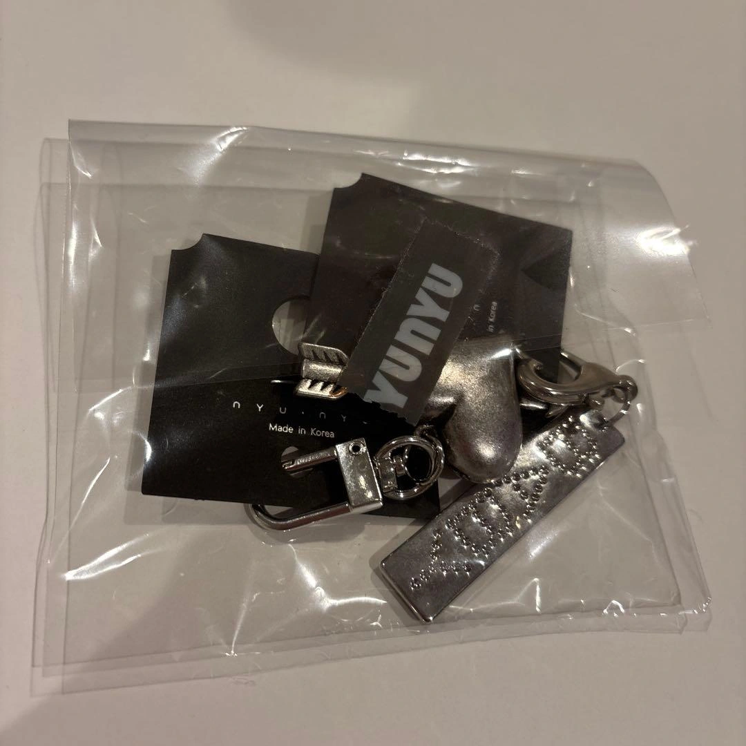 あたたかさお土産でもらったキーホルダーです。 珍しいデザインです! ハートとベイビーのお揃いも可愛いです! 金属製のキーホルダーセット、韓国製、透明袋入りです。 - 素材: 金属 - 製造国: 韓国 - デザイン: 複数のキーホルダーがセット - 価格タグ: ₩5,000 - パッケージ: 透明な袋入り ご覧いただきありがとうございます。 ご希望の方はお気軽にご連絡ください。