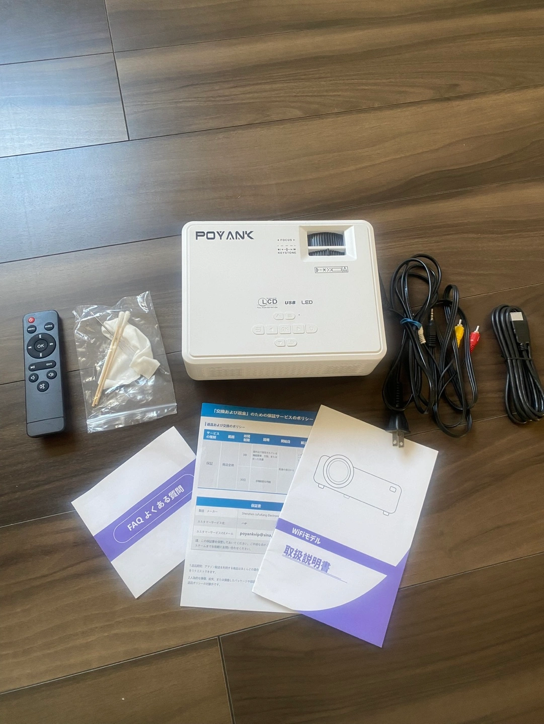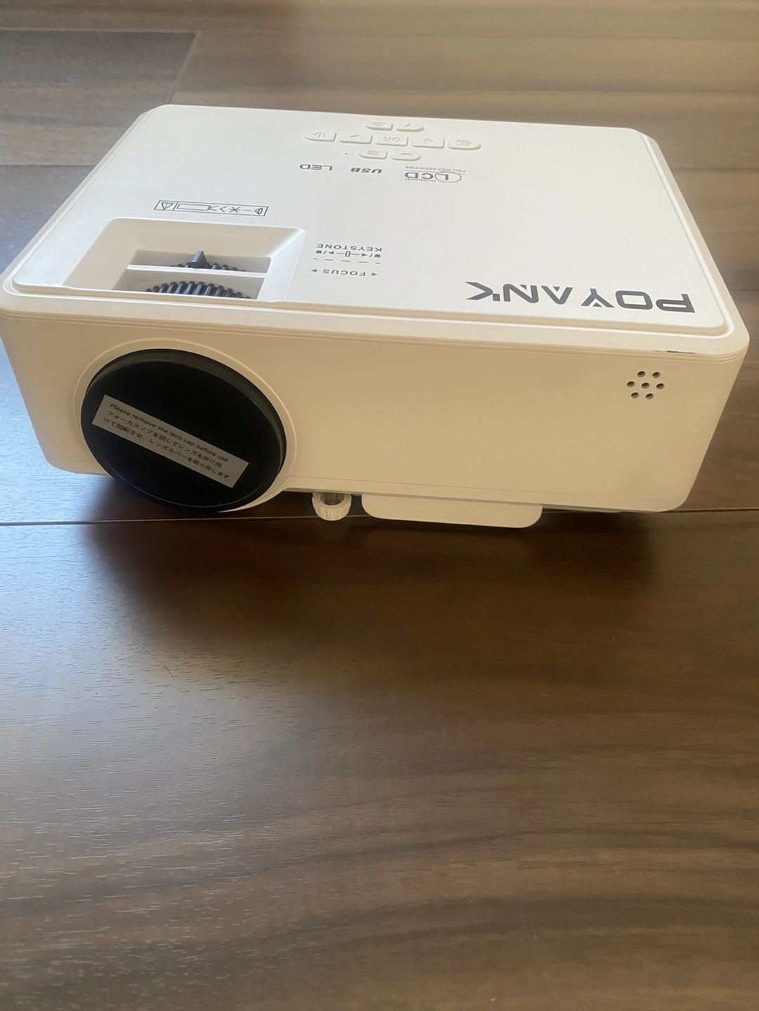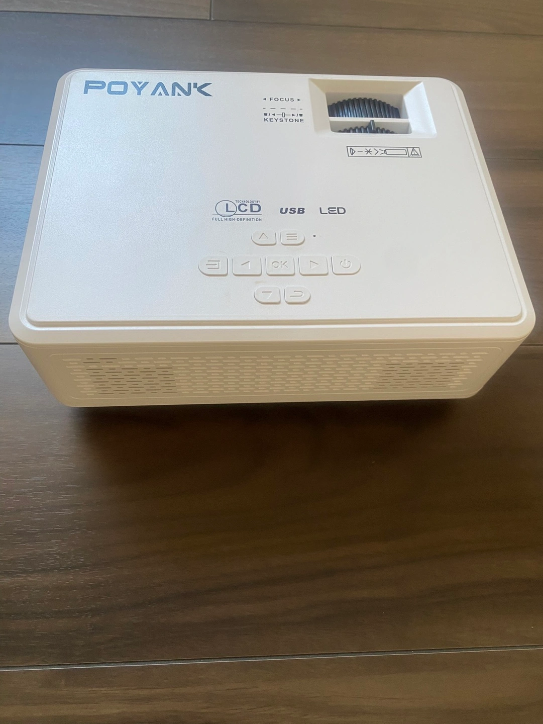 POYANK製のLCDプロジェクター本体、USB接続対応、リモコン付き。 - ブランド: POYANK - 付属品: リモコン、接続ケーブル、説明書 - モデル: プロジェクター本体 - 機能: LCD、USB接続、LEDライト ご覧いただきありがとうございます。 POYANK プロジェクターTP-03 実寸サイズ(cm) 幅20 奥行15 高さ 8cm 重さ911g ディスプレイ技術LCD 【付属品】 プロジェクター本体 リモコン AVケーブル HDMIケーブル 電源コード レンズ掃除セット レンズ掃除解説書 数回使用しました。 動作確認済み。綺麗な状態で保管してありました。ケーブルは、未使用です。 (リモコンの単四電池は、付いてません)