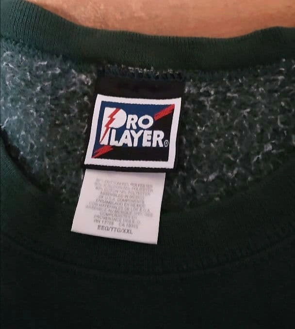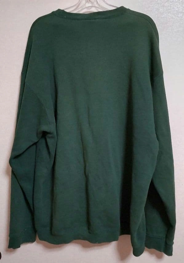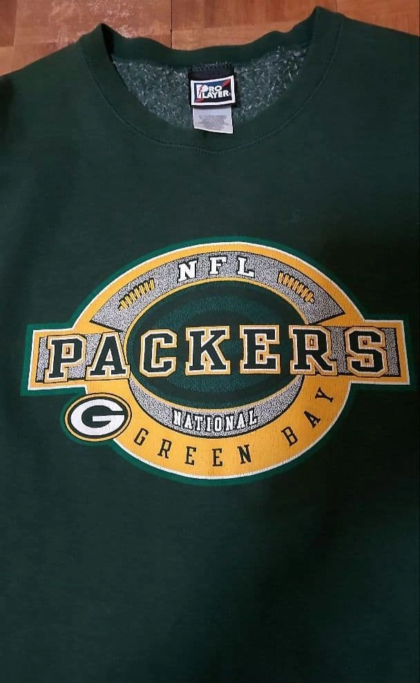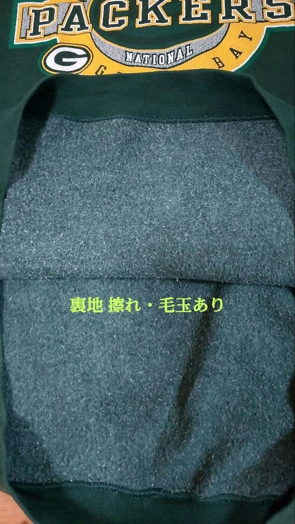 〈中古品〉《PRO PLAYER》【NFL Green Bay Packers】ロゴプリントスウェットです。 90年代頃のヴィンテージ品の様ですので、状態は良くないですが、欲しい方がいらっしゃればと思い出品しました。 製品情報: ・チーム名:グリーンベイ・パッカーズ (Green Bay Packers) ・リーグ: NFL (ナショナル・フットボール・リーグ) ・アイテム:プリントスウェット(トレーナー) 特徴:チームカラーであるグリーン系が基調。 フロントにチームロゴと「PACKERS」 「NATIONAL GREEN BAY」の文字がプリントされています。 - ブランド: NFL - チーム名: Green Bay Packers - カラー: 緑 - スタイル: ロングスリーブ - 袖口の状態: 擦り切れあり 主人が30年以上前に購入したものだそうです。 一時的に着用していましたので、かなり使用感もあり、リブ部の伸び、袖口の擦り切れなどあります。 ロゴプリントは、ひび割れがありますが、プリントの薄れは殆どないと思います。 左袖に引っ掛けたと思われる穴があります。 裏地は、全体的に擦れ・毛玉あります。 サイズは、多分XXLではないかと思います。 下記のサイズを参考にして下さい。 平置きサイズ:肩幅...約63cm、袖丈...約63cm、身幅...約65cm、着丈...約75cm 素人の採寸ですので、誤差はご了承下さい。 かなり古いものですので、商品の状態をご理解頂ける方にお譲りしたいと思います。 #中古品 #NFL #プロプレイヤー #:Green Bay Packers #アメリカンフットボール #ヴィンテージ #ナショナルグリーンベイ #ロゴプリントスウェット