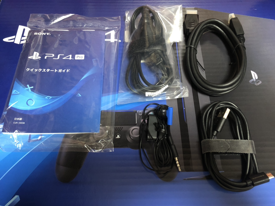 PS4 Pro 1TB CUH-7200Bに写真のソフト2つお付けします。 3年前の物であまり使用しなかったのですが、表面にいくつか傷などは見当たります。 ですがまだパッと見はかなり綺麗だと思います。 初期化してすぐに遊べる状態までセットアップしておきました。 付属品はコントローラー1つと電源コード、コントローラー充電用のUSBケーブルとHDMIケーブル、印刷物やイヤホンと元箱になります。 PS5を購入して全く使用しなくなってしまったので必要な方のご連絡お待ちしてます。
