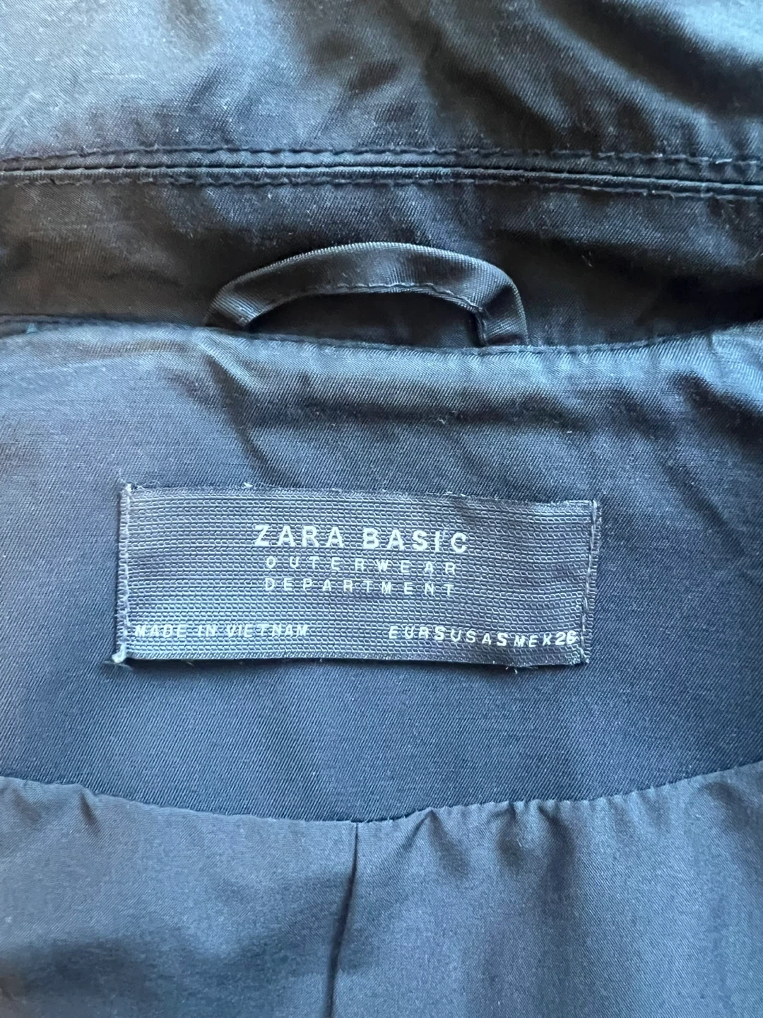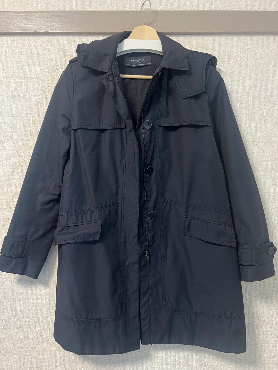 ザラベーシックのアウターです。 フード取り外し可。 しっかりした生地です。 色: ダークネイビー 襟下からの丈: 83センチ ・ブランド:ザラベーシック ・素材: ・外側:63% 綿、37% ナイロン ・裏地:100% ポリエステル ・洗濯方法:洗濯機洗い可、液温は30℃を限度とする、漂白剤使用不可、乾燥機使用不可 ・サイズ:EUR/USA/S, MEX/26 ・製造国:ベトナム 中古品であることをご了承ください。 🌲お渡しは12/18まで。以降は年始となります。